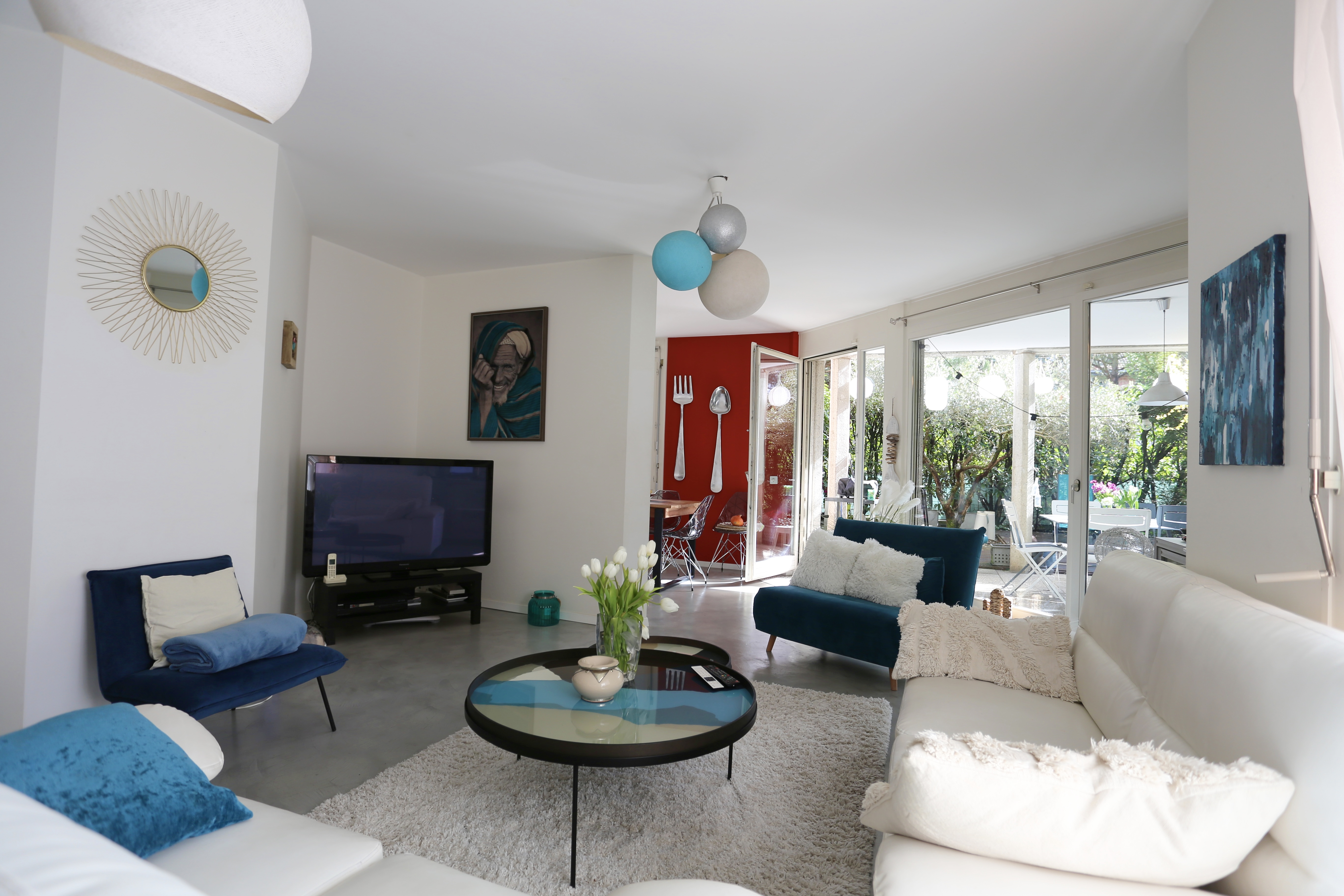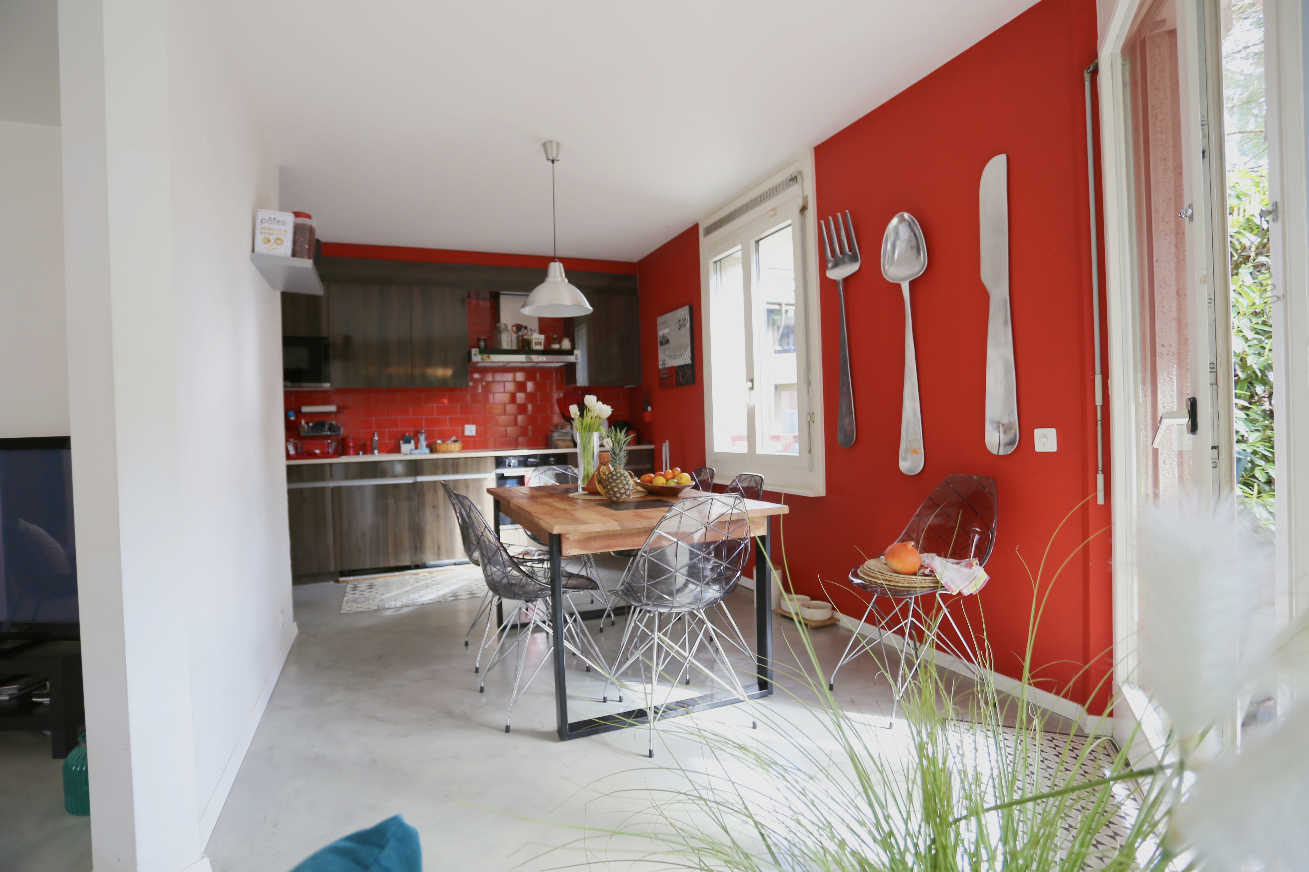 - Salon - salle à manger (sol en béton ciré) avec accès à la terrasse / jardin